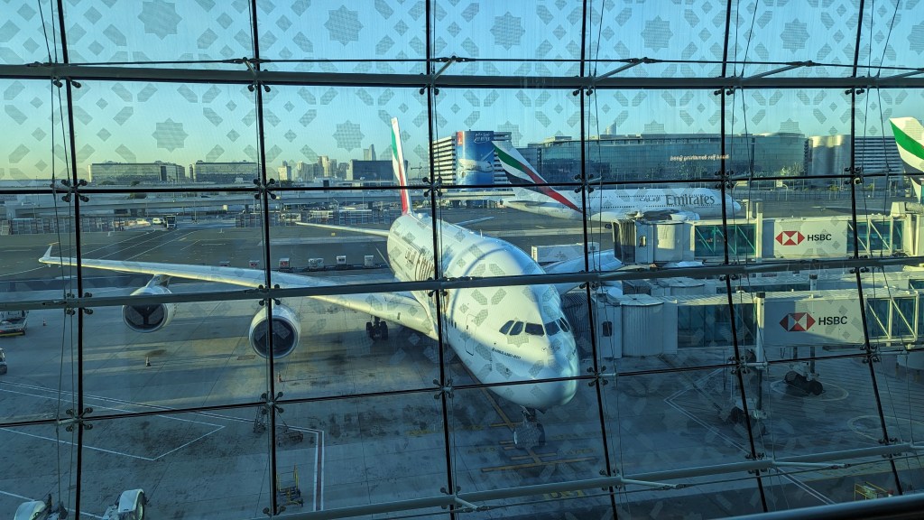 Stage 2 successfully completed with superb service/flight from Emirates and their Airbus A380 – never travelled in such a huge double decker๐