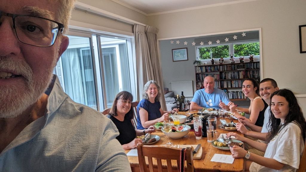 On returning to Fiona and Deryk’s classical NZ home we met up with their daughters Lucy and Emily (plus her boyfriend.. Hamish 🏴󠁧󠁢󠁳󠁣󠁴󠁿😉) where we treated to a superb BBQ