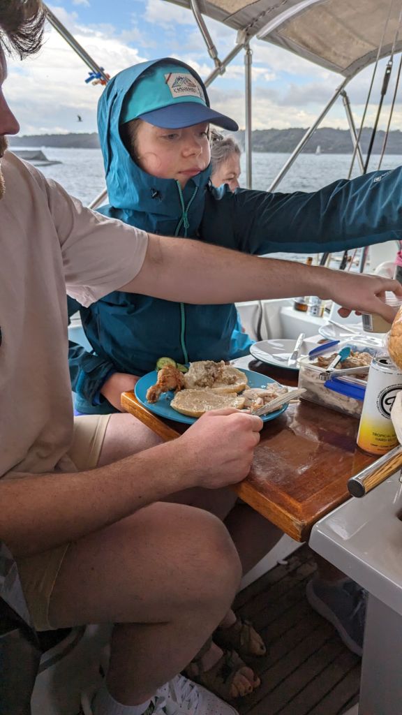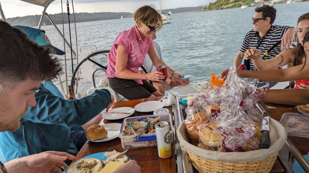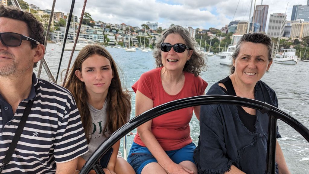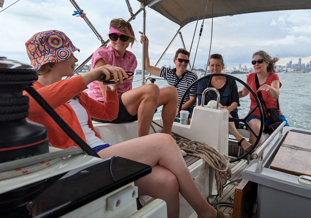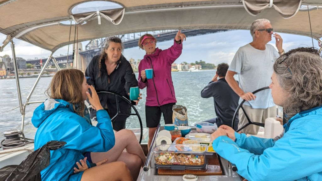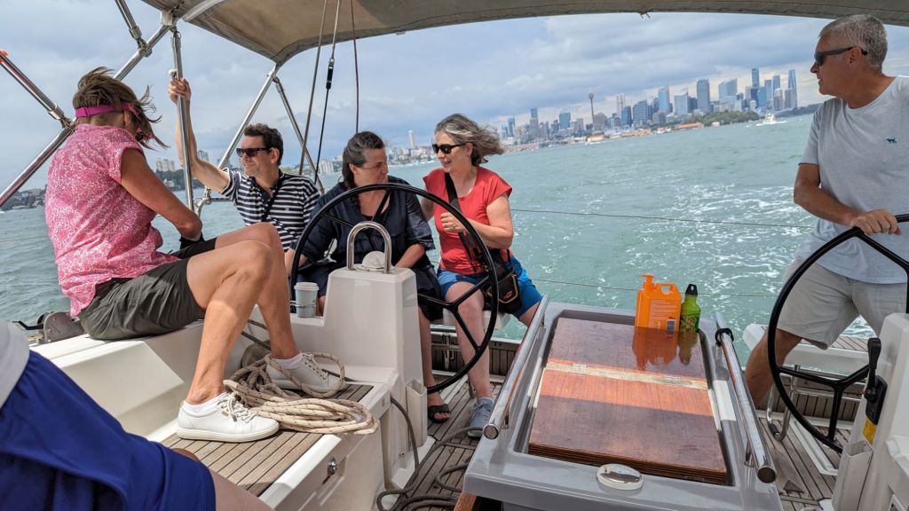 G’day folks from Sydney where, thanks to a very appealing suggestion from our new hosts Teresa & Trevor, 3 families agreed to hire a 41′ yacht and sail all 11 of us round Sydney Harbour for the dayππ²πβ΅