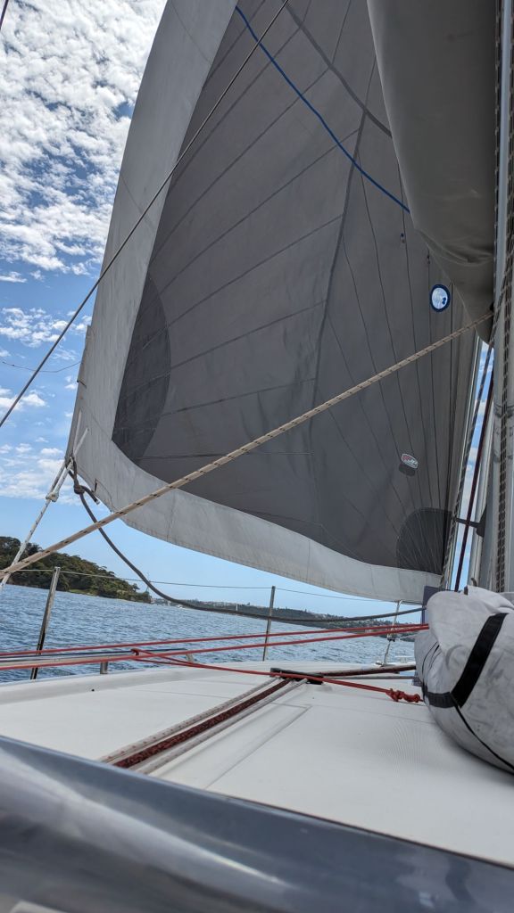 We used the twin motors first to navigate away from the bay where we were moored and then the “hoist the mainsail” order was given by the skipper!