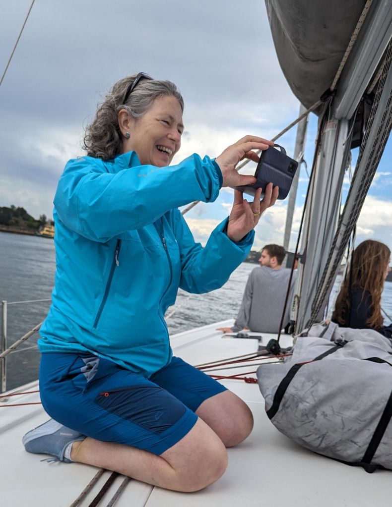 Once aboard skipper Teresa, more than ably abetted by helmsman Trevor, came into her own organizing her crew to quickly learn some new tasks and terminology…