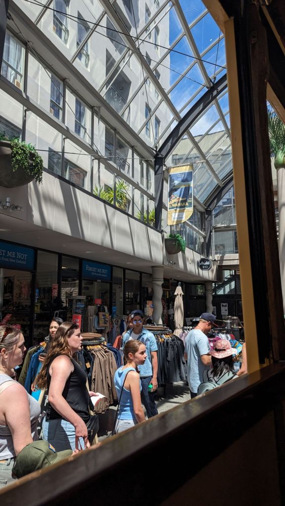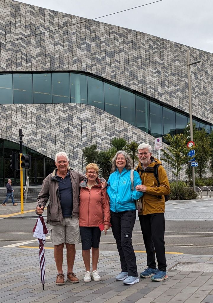 So, having realized it was going to be a GoreTex day, we met up with Gail and Ian at the recently built – ie post the 2010/11 earthquakes – Turanga Library adjacent to our hotel. Good call cousin 😊