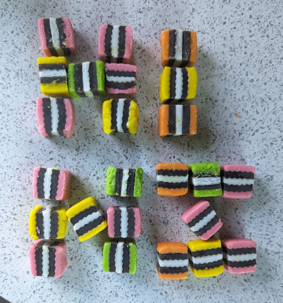 The MH hire firm had left a large tub of liquorice allsorts in our bus and I had, quelle surprise, consumed most of them; beware this can clearly impact on your choice of attire😂