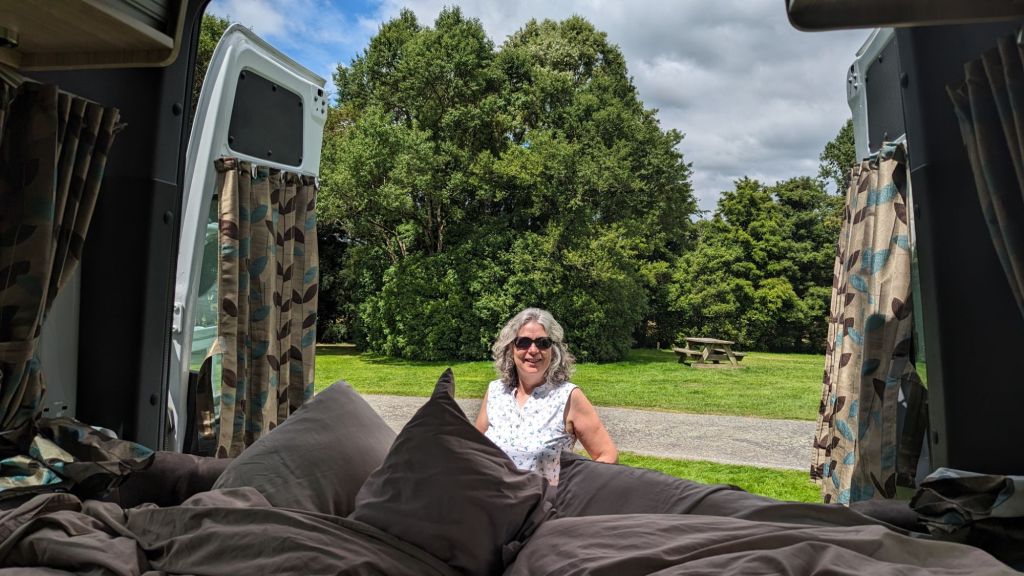 1. Thise DoC campsites really are amazing and special feature of touring NZ. You both look very happy and at home in your aptly named Britz van… especially when ‘cooking with wine’, Julie…