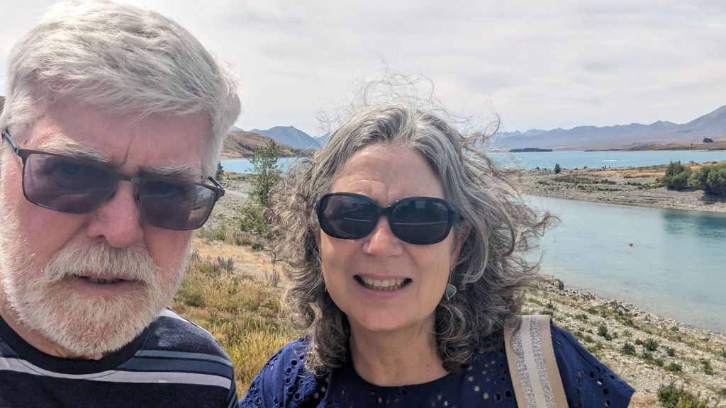 We crossed over Burke’s Pass before descending to the southern end of Lake Pukaki where “gob-smacked” barely describes how we felt when we saw Mount Cook for the first time, sitting majestically on the northern shore😲