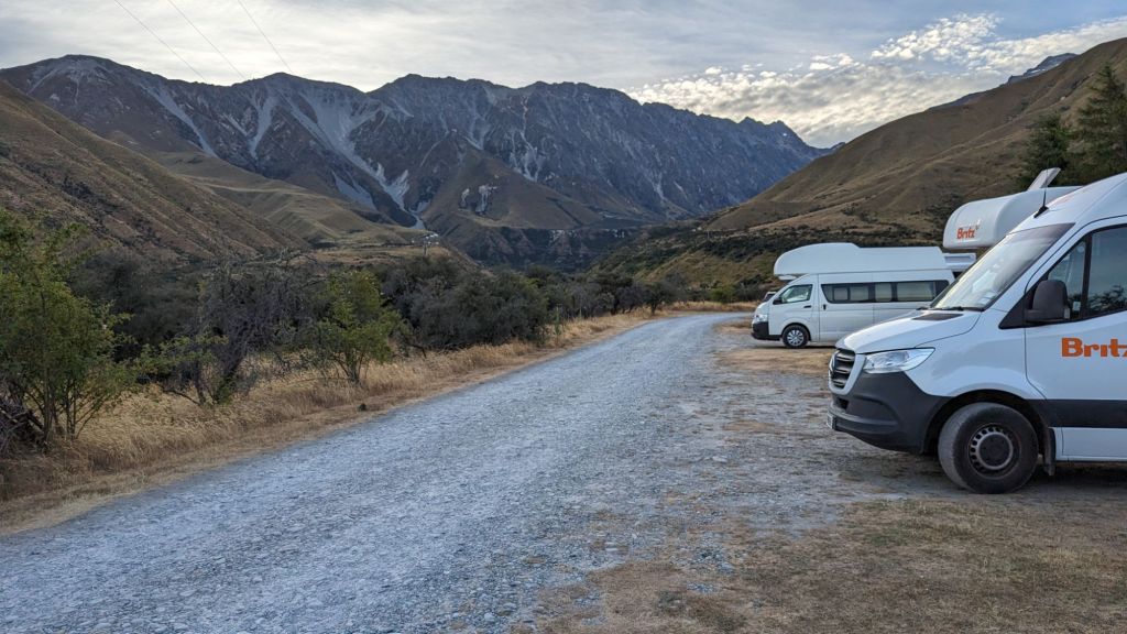 Blessed with another clear blue sky – and a peak forecast of 26C 😎 – we decamped from this cracking campsite and set our bearings for Mount Cook, the highest mountain in NZ – think 3 x Ben Nevis🏔️