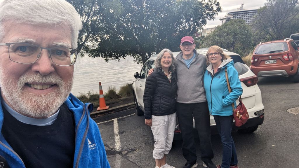 We arrived in Dunedin c.3 pm after descending and climbing some very steep streets to be greeted by Pete & Pam… thankfully they all recognized each other too!