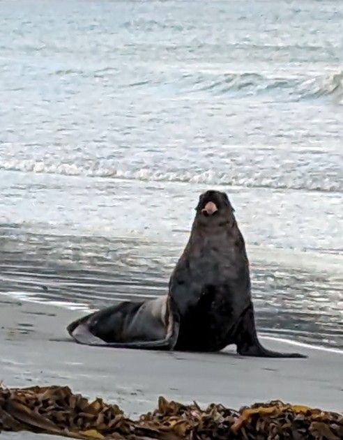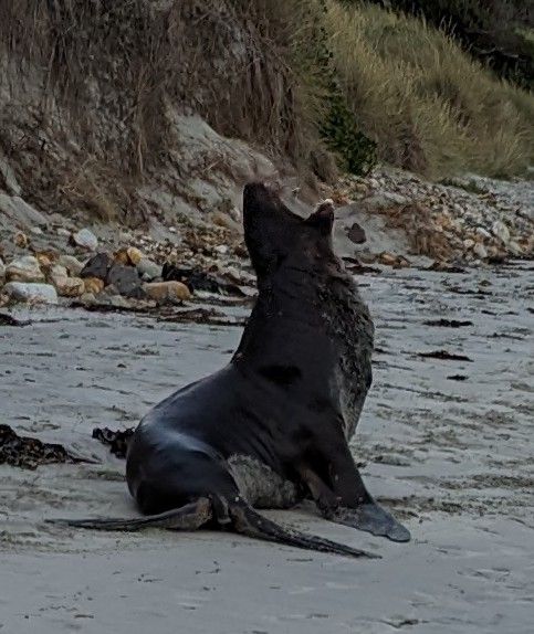 This beach is home to many fur seals, and sometimes, huge sea lions too; I soon learnt that getting within 10 metres to take a photo of such a beast was not such a good idea as he suddenly roared, rose up on all four flippers then went into Usain Bolt mode with me clearly as his prey!ðĪŠ