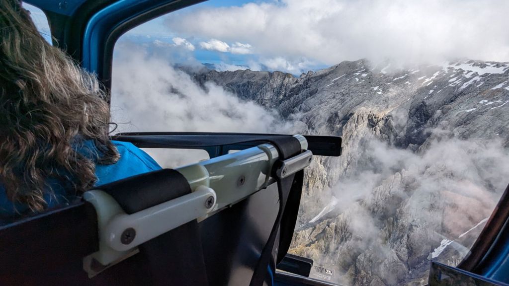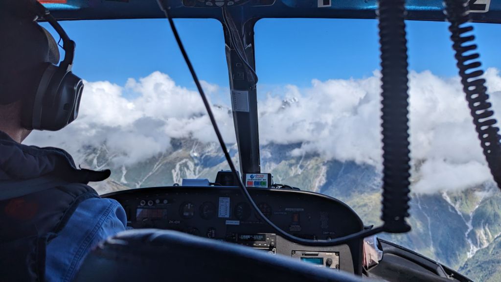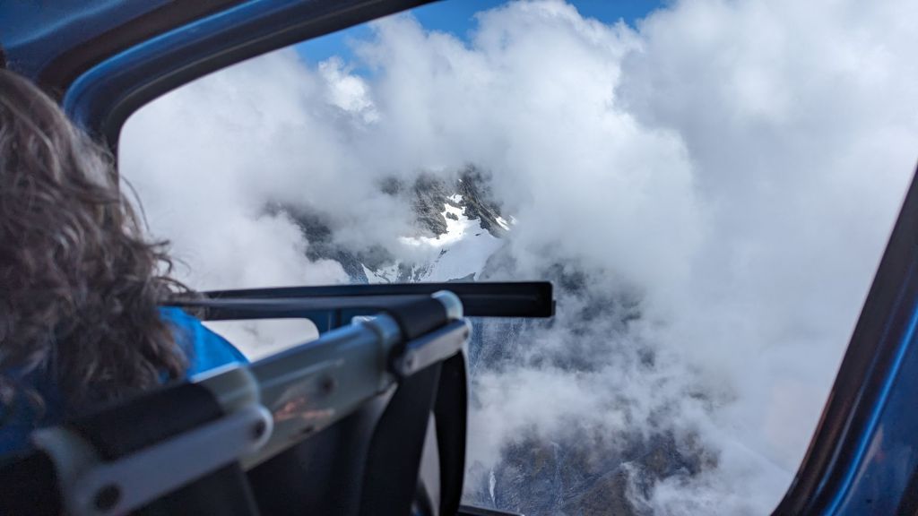 The weather in the mountains changes rapidly and 20 minutes after our landing on the first glacier our pilot told us that area was now covered in mist, so no longer a landing point.