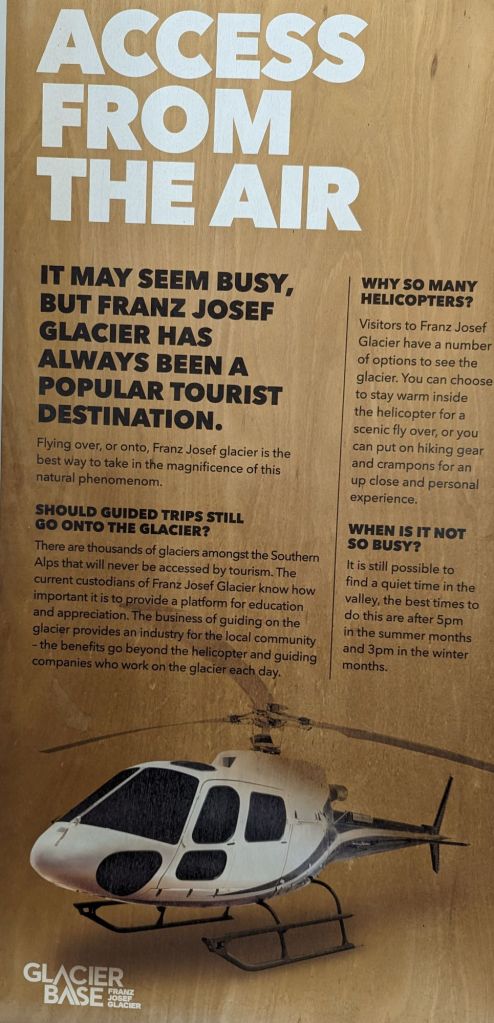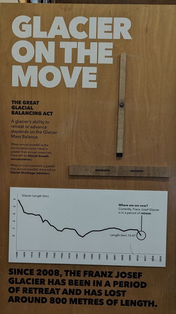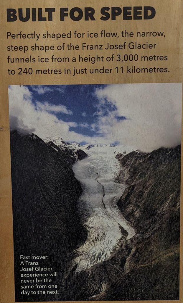Across the road from our campsite there is a recently built DoC centre which provides a lot of info of how Franz Josef developed into the tourist hub it now is and how much of a lure the number of substantial glaciers has been