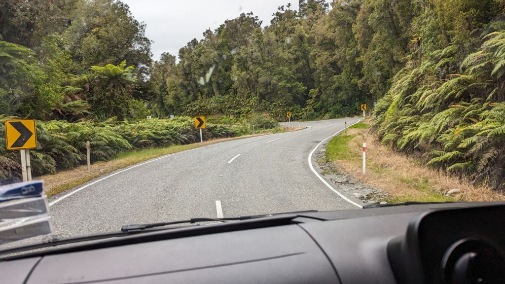 If you’ve never driven on this type of road before, we hope the following gives you some idea of how it is when you are also passing through a native rainforest (NB these unedited shots are all in strict chronological order too ๐)