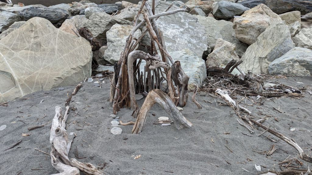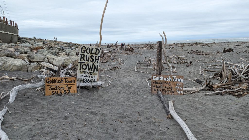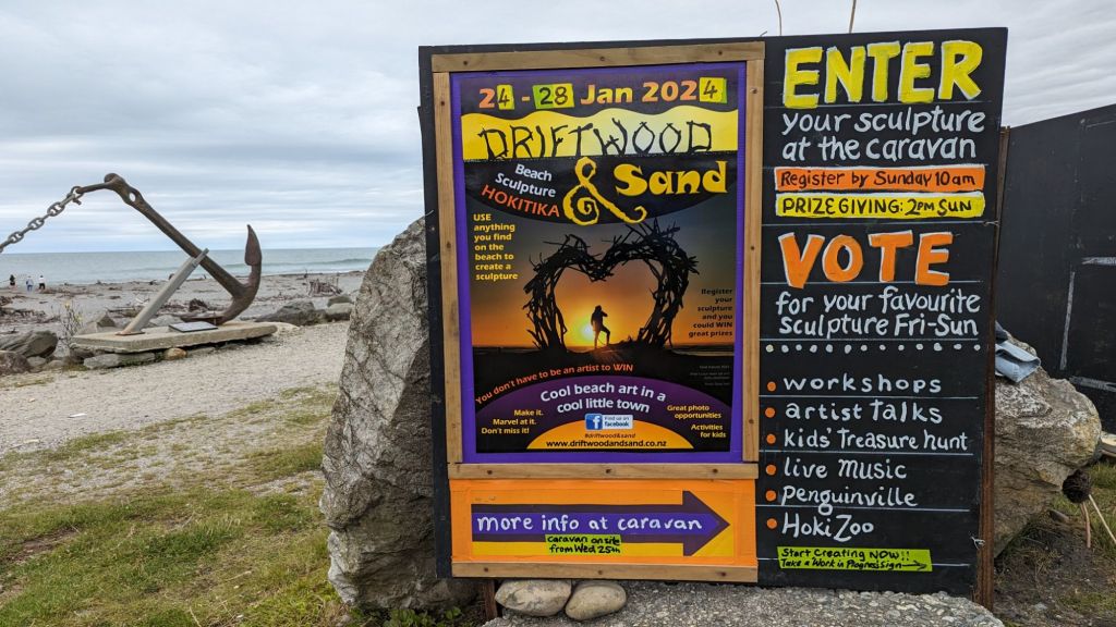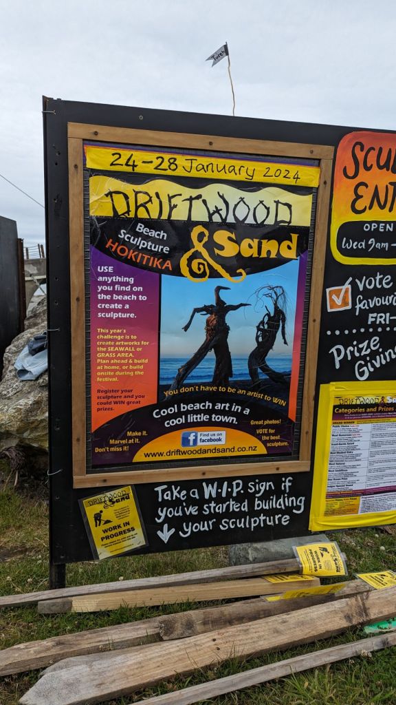 Although we had already spent some time in Hokitika our route took us back through this cool wee town; and since they were hosting their annual Driftwood & Sand Sculptures competition this very weekend we were keen to see how this was panning out, as they certainly ain’t short of the materials required ๐