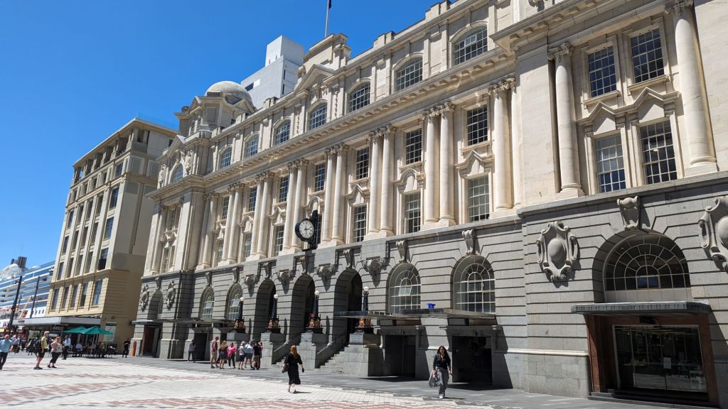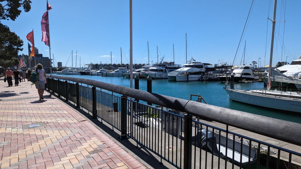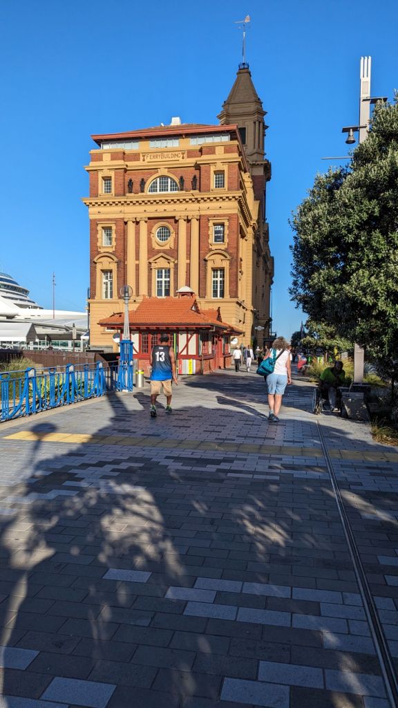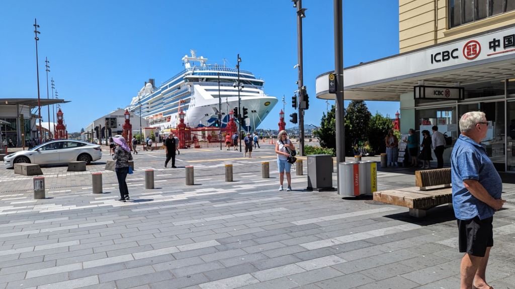On exiting the station at the Britomart terminus we were immediately impressed by the setting and the extent of the greenery…not to mention the huge cruise ship moored nearby…