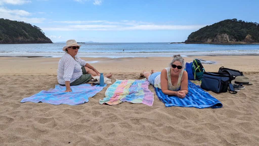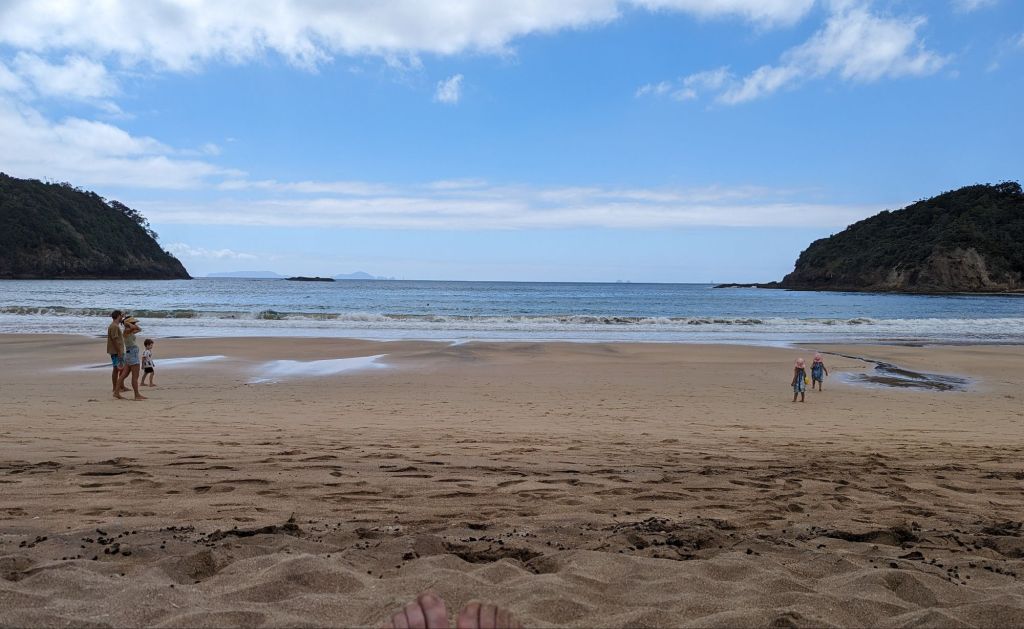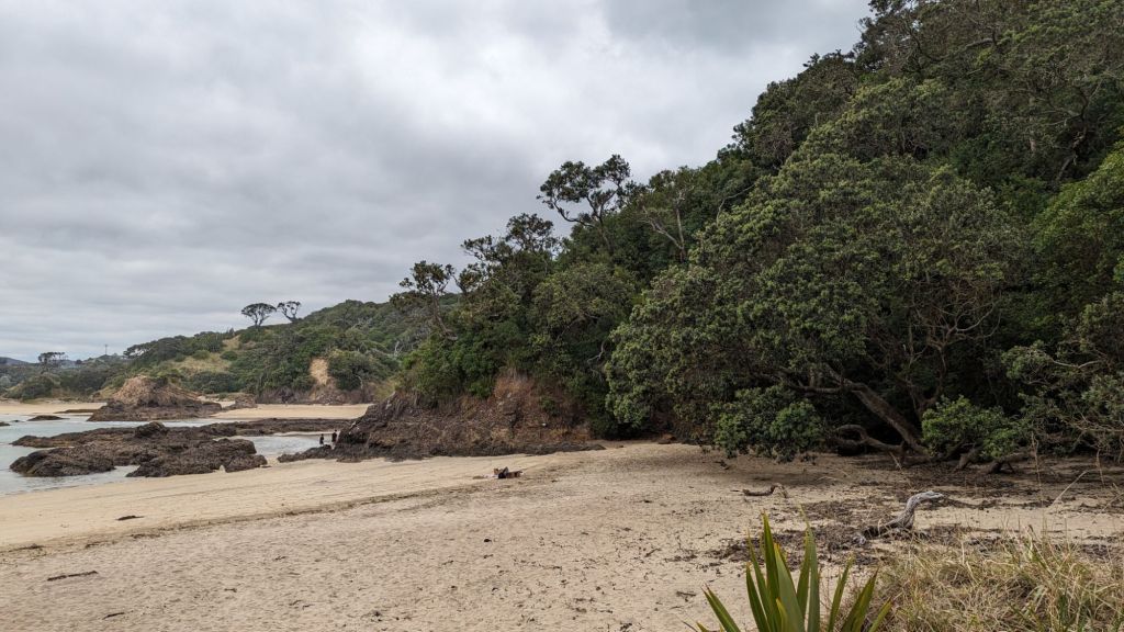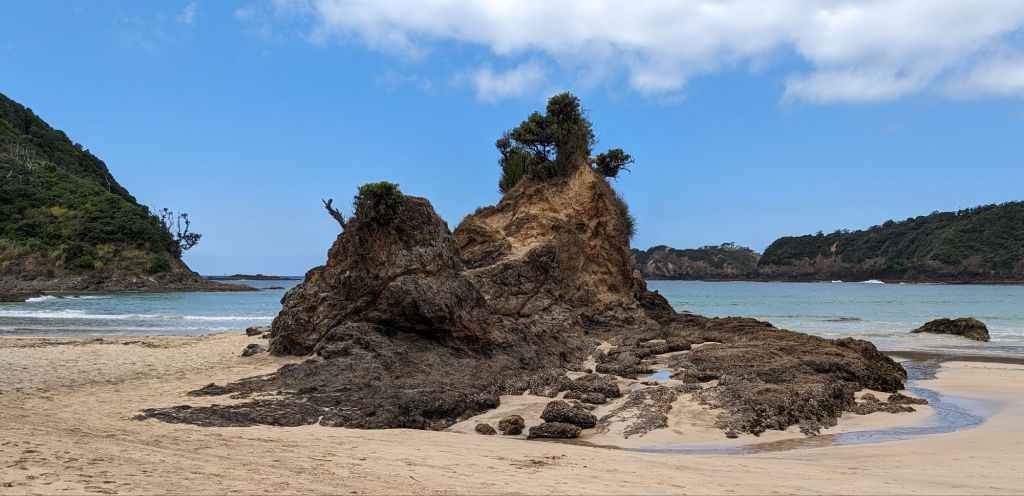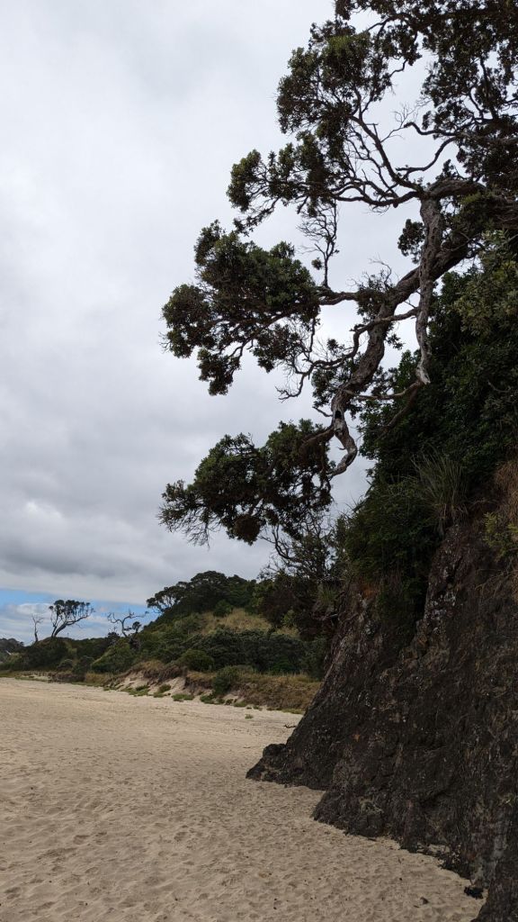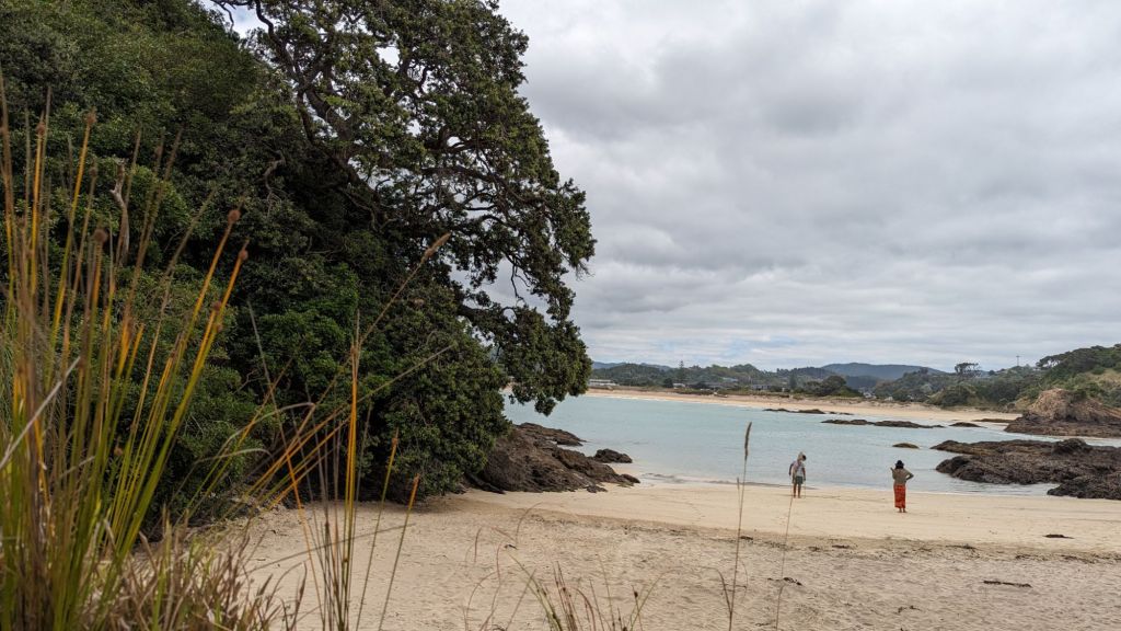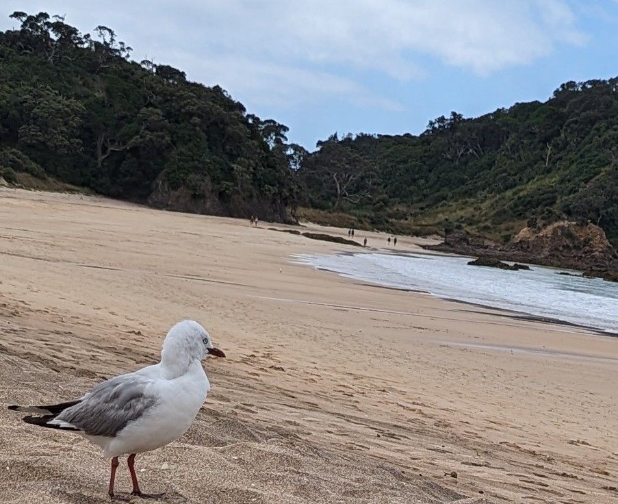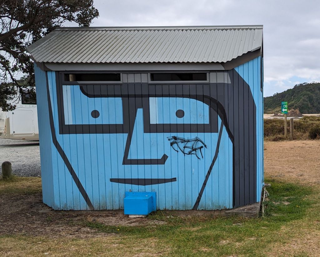 Not only was this classically shaped cove all you’d wish for of a beach, with warm soft sand, a very gentle slope into the water and only a handful of other folk there, it also had a free gas BBQ and public loos decorated in a style which we now regarded as commonplace, such is how well NZ embraces the outdoor life๐ณ๐ฟ๐