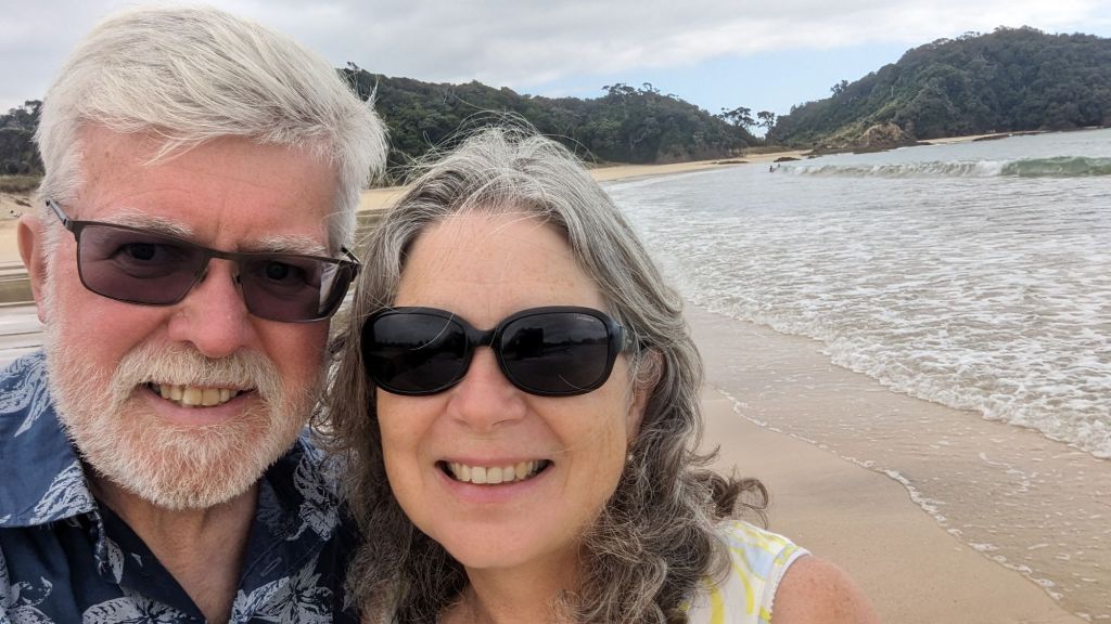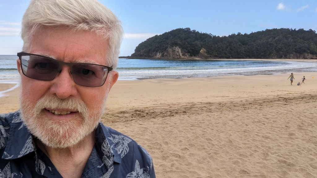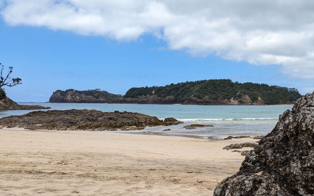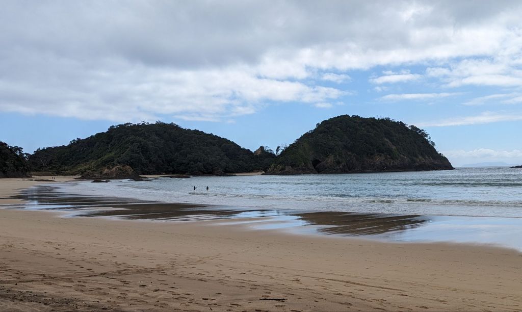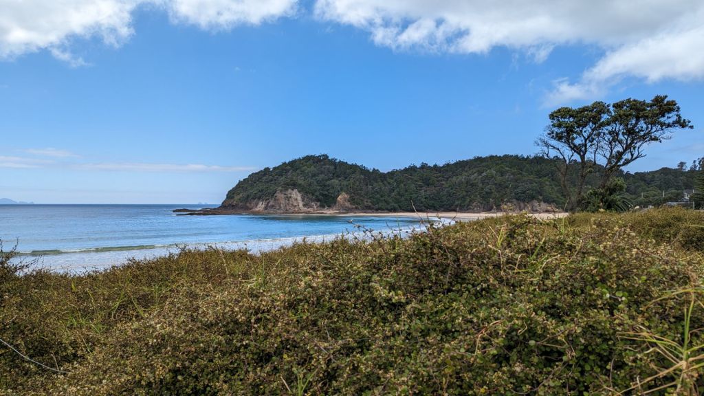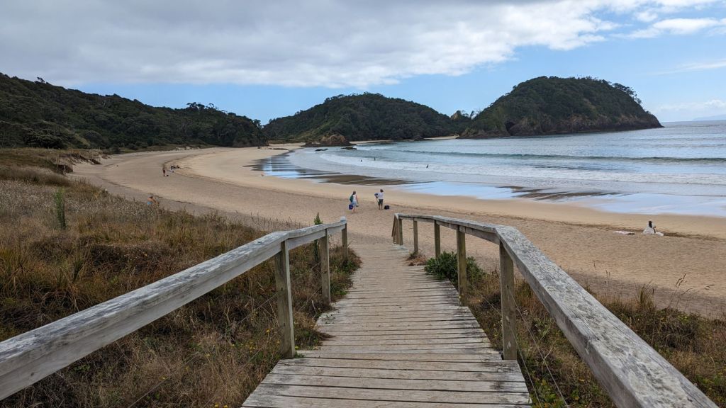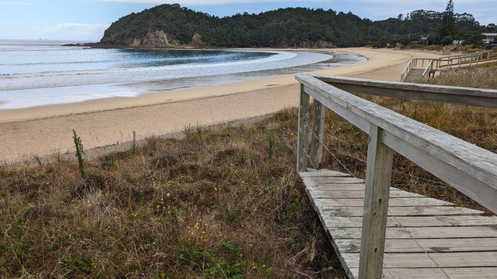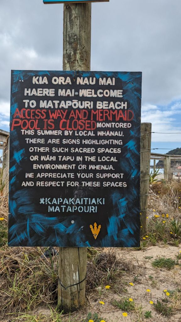 Not only was this classically shaped cove all you’d wish for of a beach, with warm soft sand, a very gentle slope into the water and only a handful of other folk there, it also had a free gas BBQ and public loos decorated in a style which we now regarded as commonplace, such is how well NZ embraces the outdoor life๐ณ๐ฟ๐