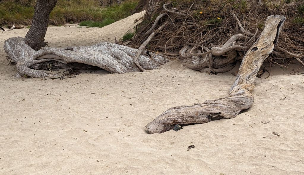 Julie went off to check out one side of the cove; upon returning, a wee while later, she was clearly dismayed at the extent of the coastal erosion threatening the very existence of a couple of expensive looking properties…๐ค