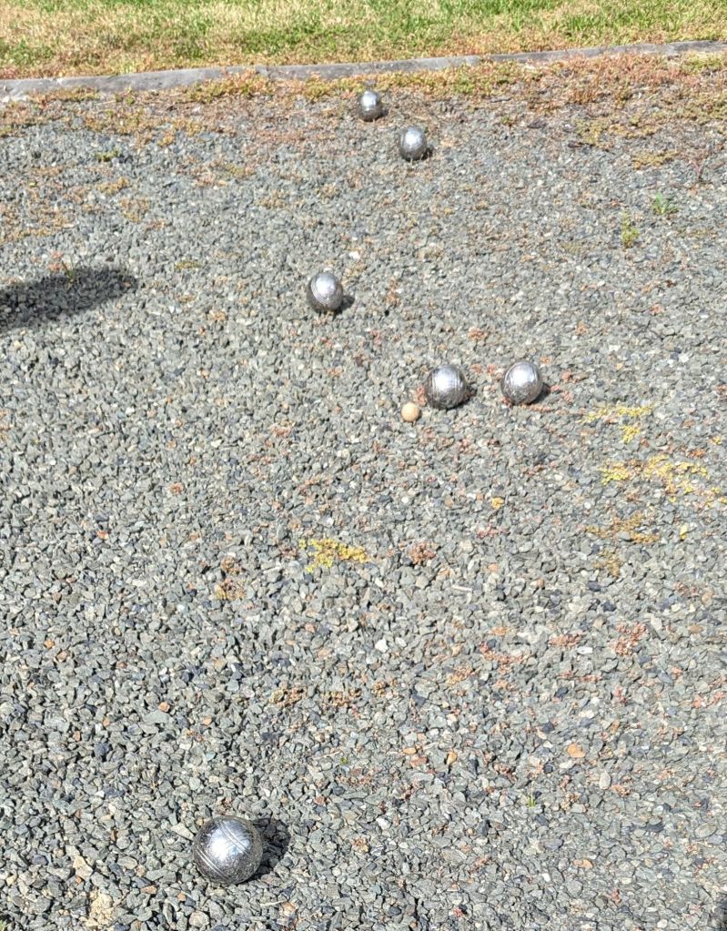 After buying my lottery ticket we took to the shade for a game of boules/petanque; despite my best efforts Elaine slid up the inside rail to win 10-8-7…
