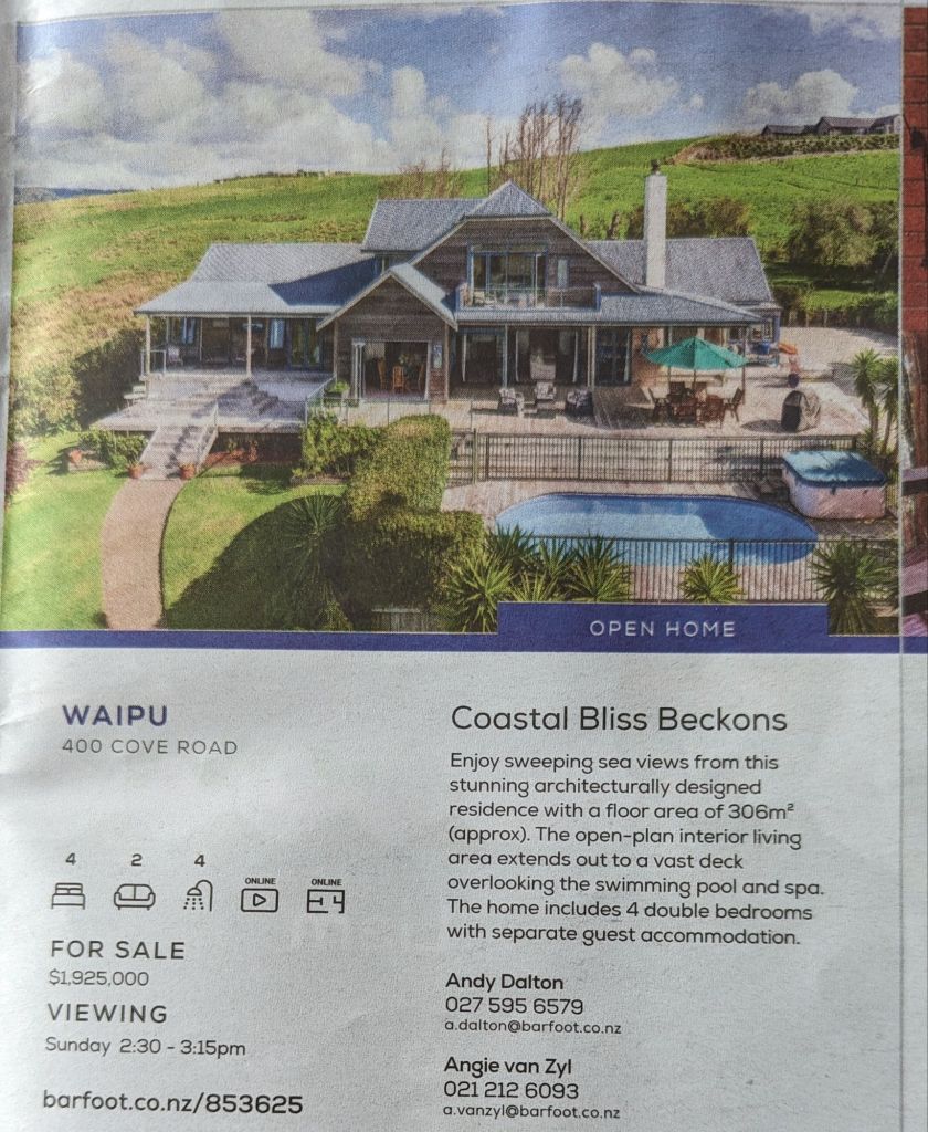 After lunch I found myself browsing through the local property paper seeing what one million pounds would get you…and whether access to the beach would suit me😉😎