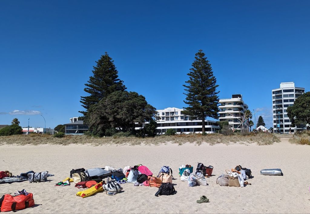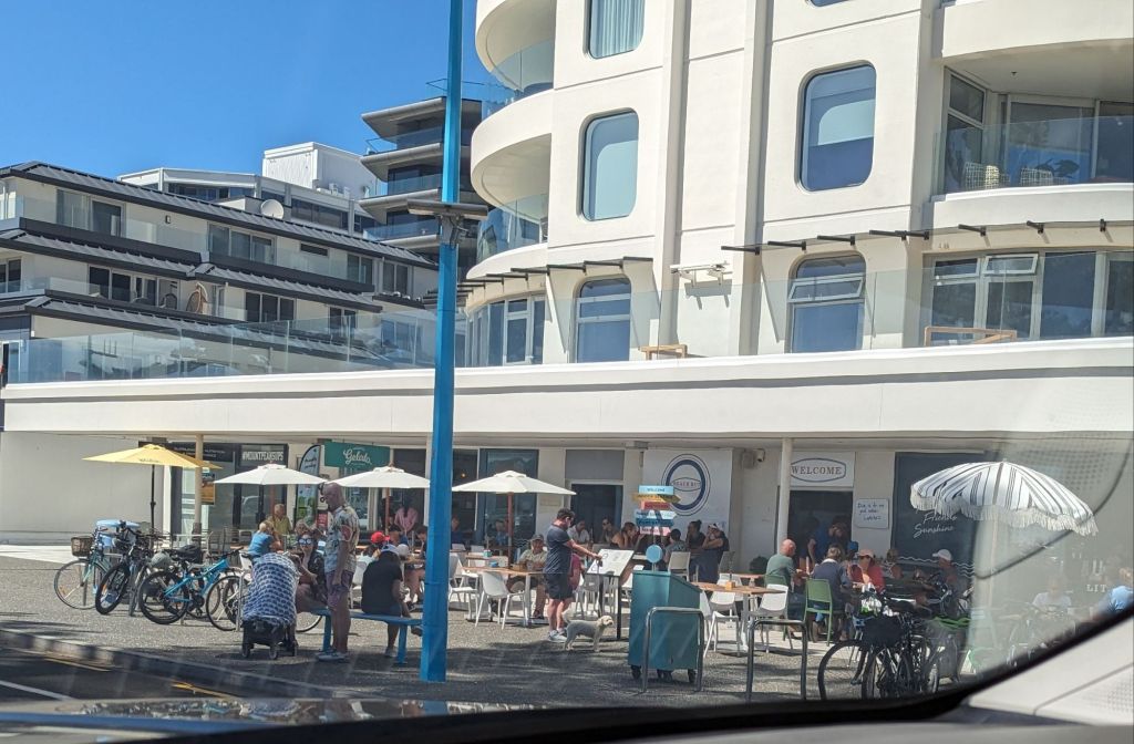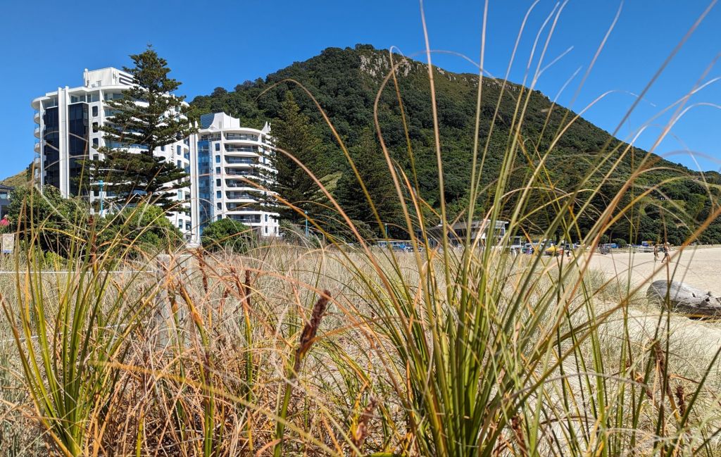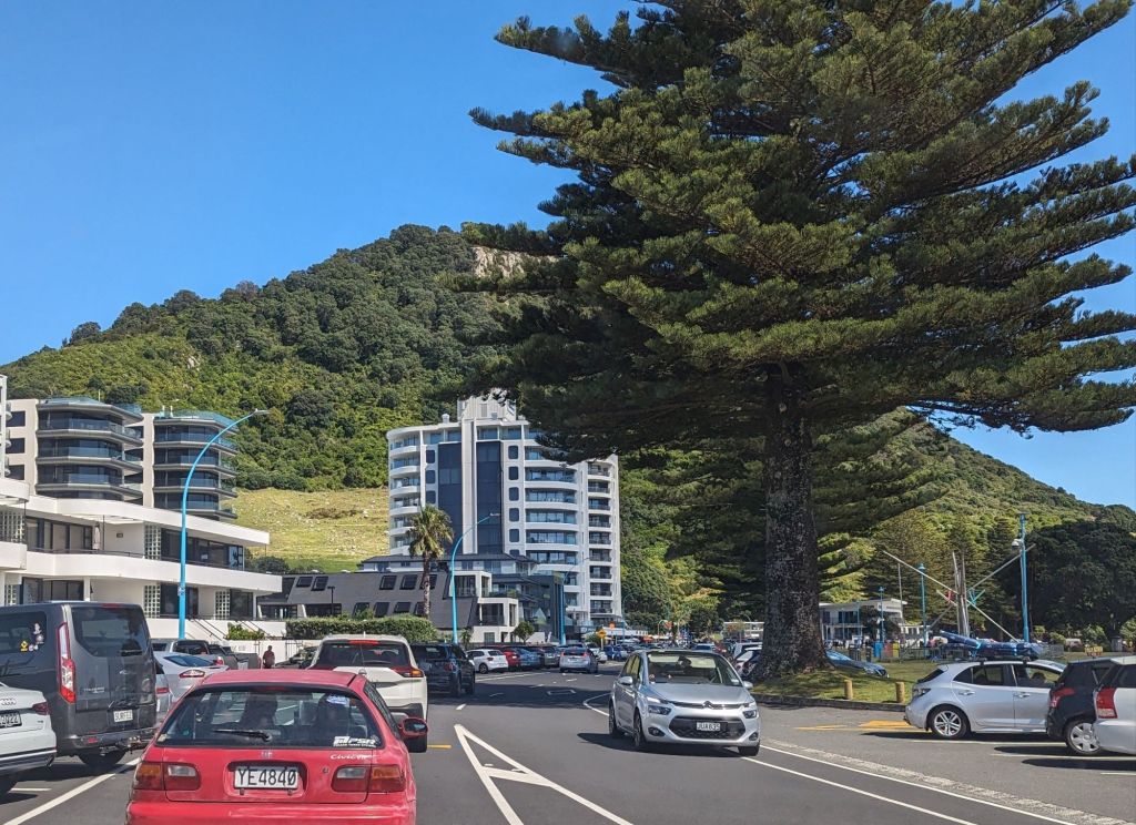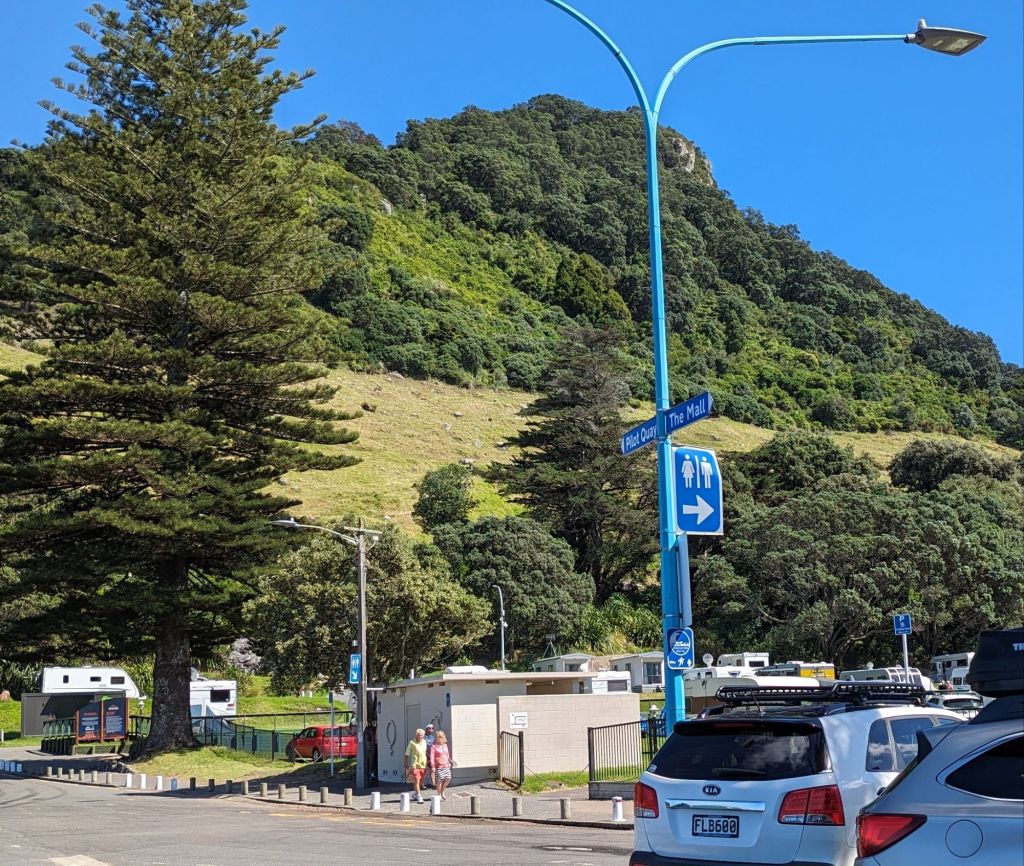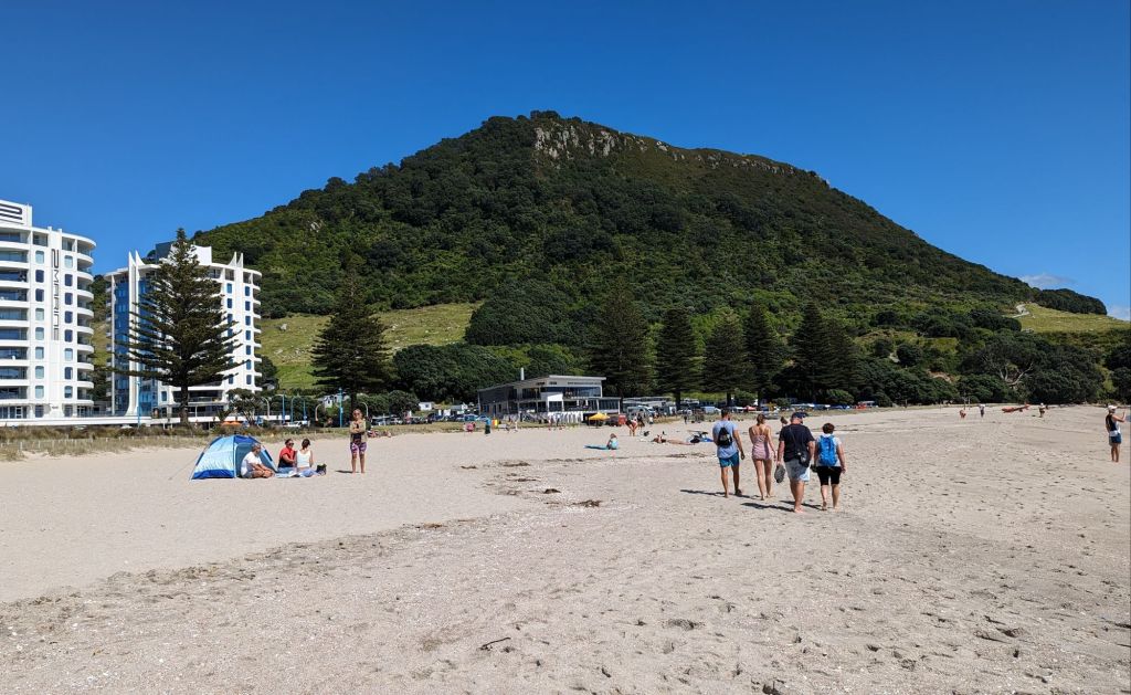 But first we had to say goodbye to our wee bach in Tauranga and, with the prospect of a sunny day ahead, take a closer look at Mount Maunganui, which sits prominently at the edge of one of the 2 entrances to the massive Tauranga harbour – and definitely falls into the “Ya cannae miss it!” category – plus the wide surf beaches ποΈππ½ββοΈπ