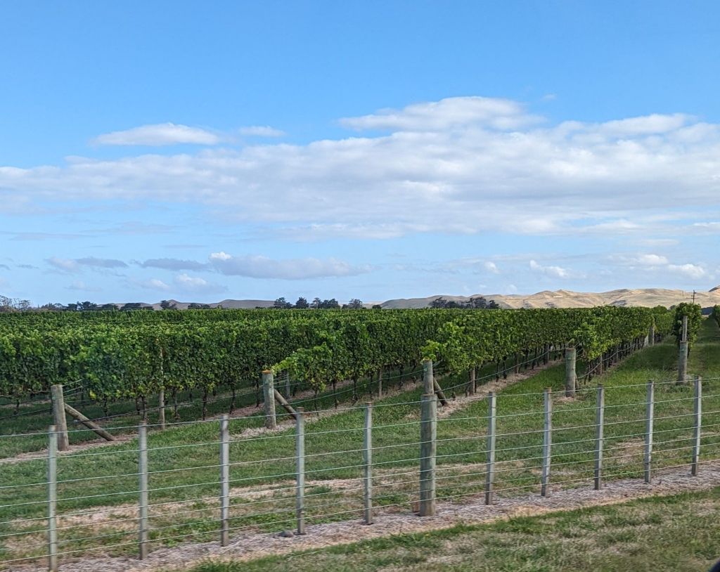 Once that section was over it became abundantly clear that we had entered the famous wine growing district of Hastings in Hawke’s Bay, where the serried ranks of groomed grapevines dominate the vista across the flat plain…