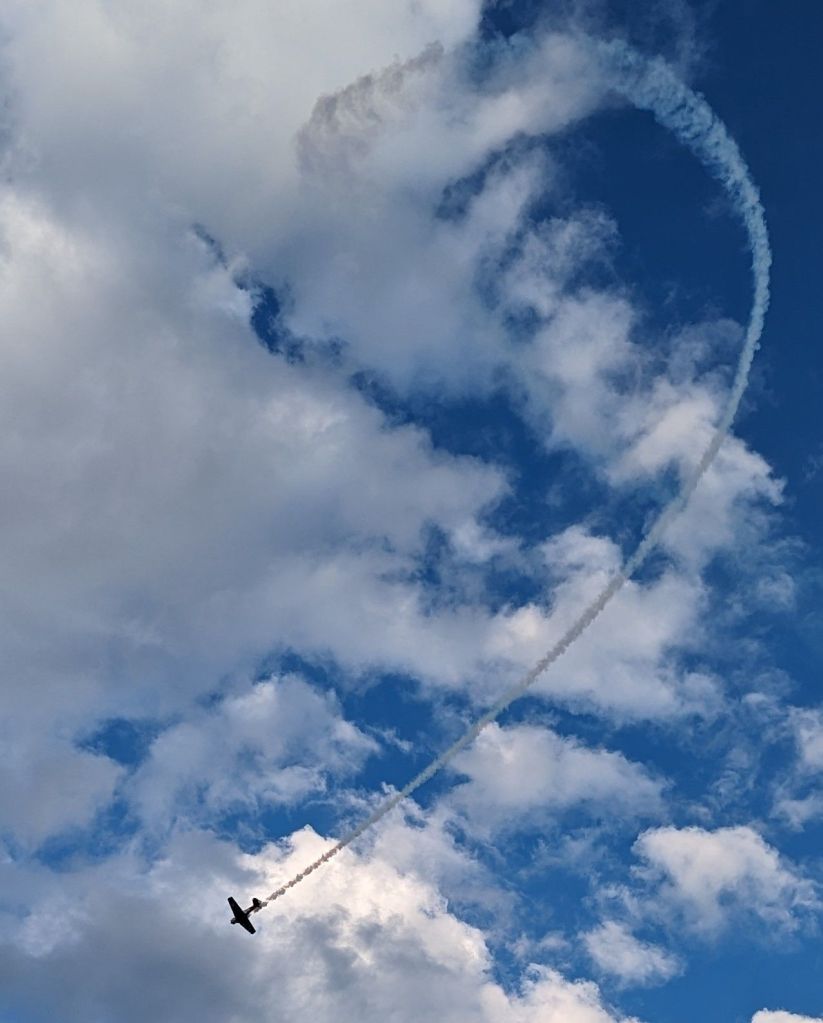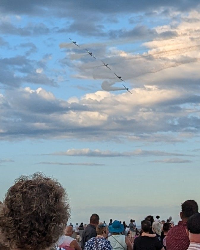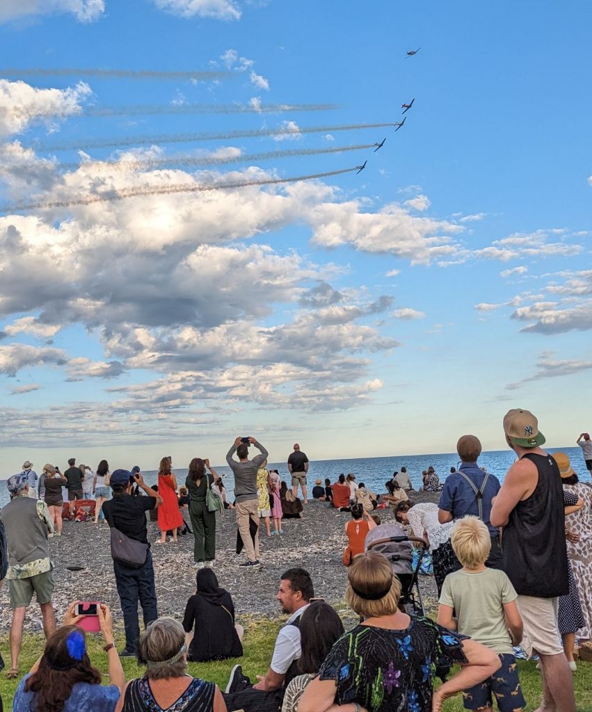 …but before we headed into that arena we joined hundreds of others on the adjacent beach as an aerobatic display by old aircraft “took off”…