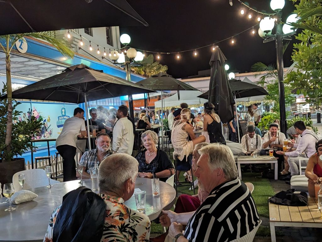We ended our first full day at the Art Deco Festival with “one for the road” in another outdoor venue…