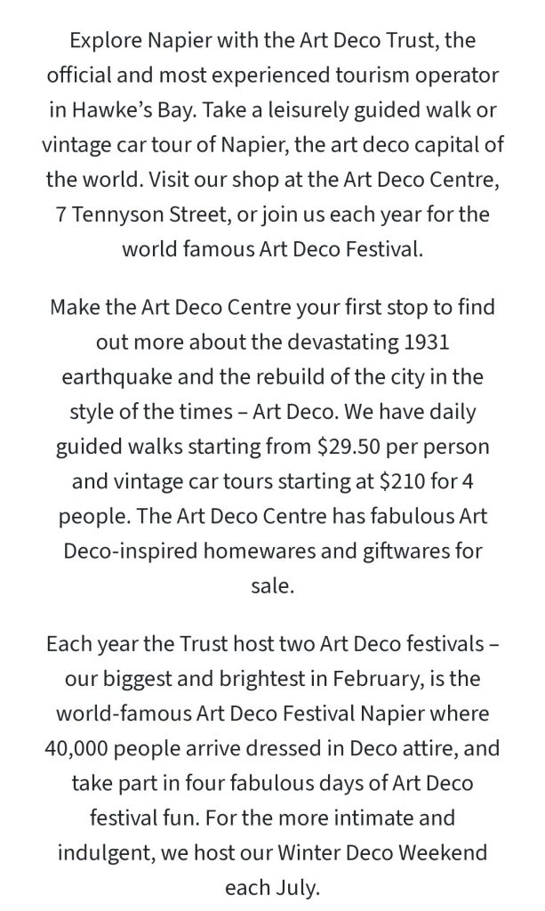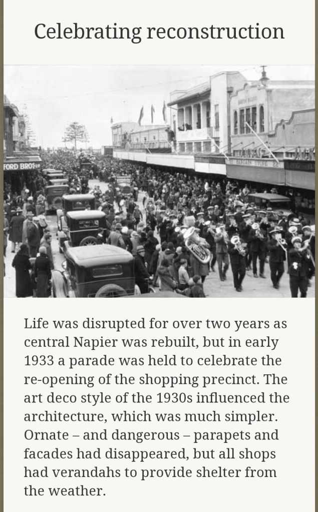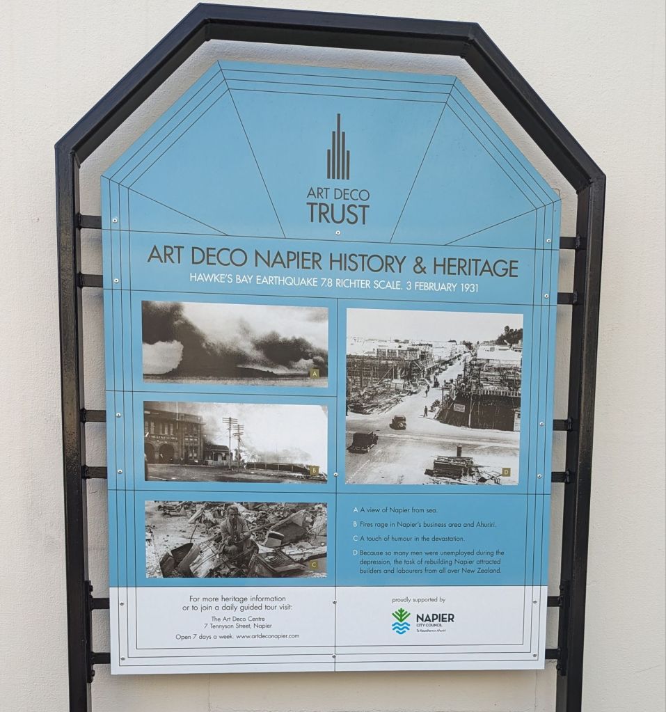 Our walking tour was due to start at 9 am with a short film about the 1931 Earthquake and how the city recovered to become the Art Deco Capital of the World it is today…