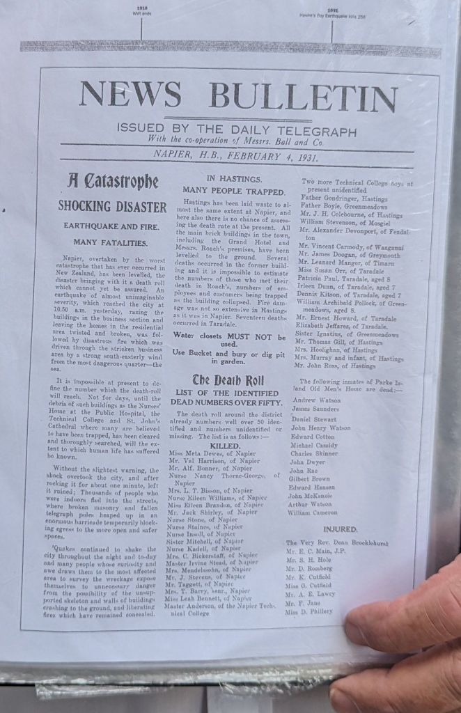The first surprising fact we learned was that, prior to the 1931 Earthquake, Napier was a hill based city overlooking the large, but relatively shallow, Ahuriri Lagoon; when the massive earthquake hit, the ground in the lagoon heaved up 2.7 metres emptying it completely…