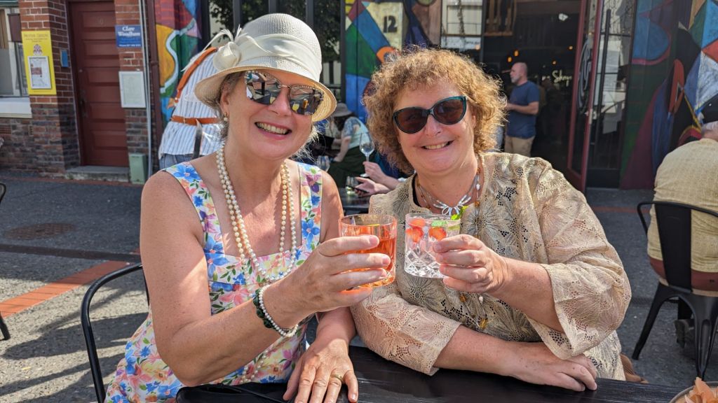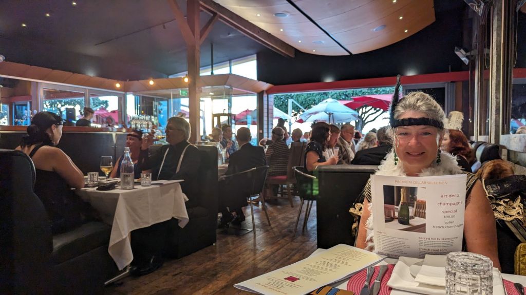 Since June was dropping Bill off for a Stag bash in Napier we had the ideal opportunity for Julie and her to continue their Chatathon over “refreshments”…cue Costume 3…and even I was suitably dressed by now π