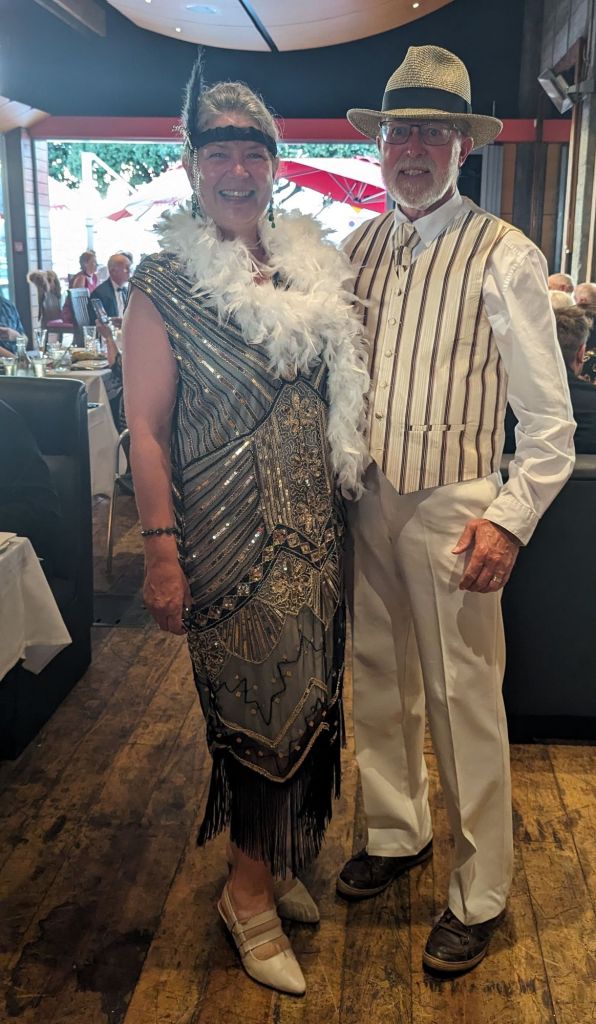 After I struggled to get a word in edgeways June left to collect Bill, no doubt a tad “under the weather” by now, as we headed back to our hotel for just one more costume change to ready ourselves for…