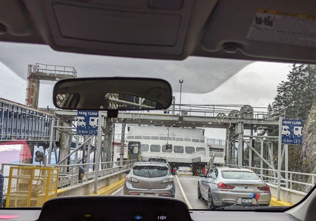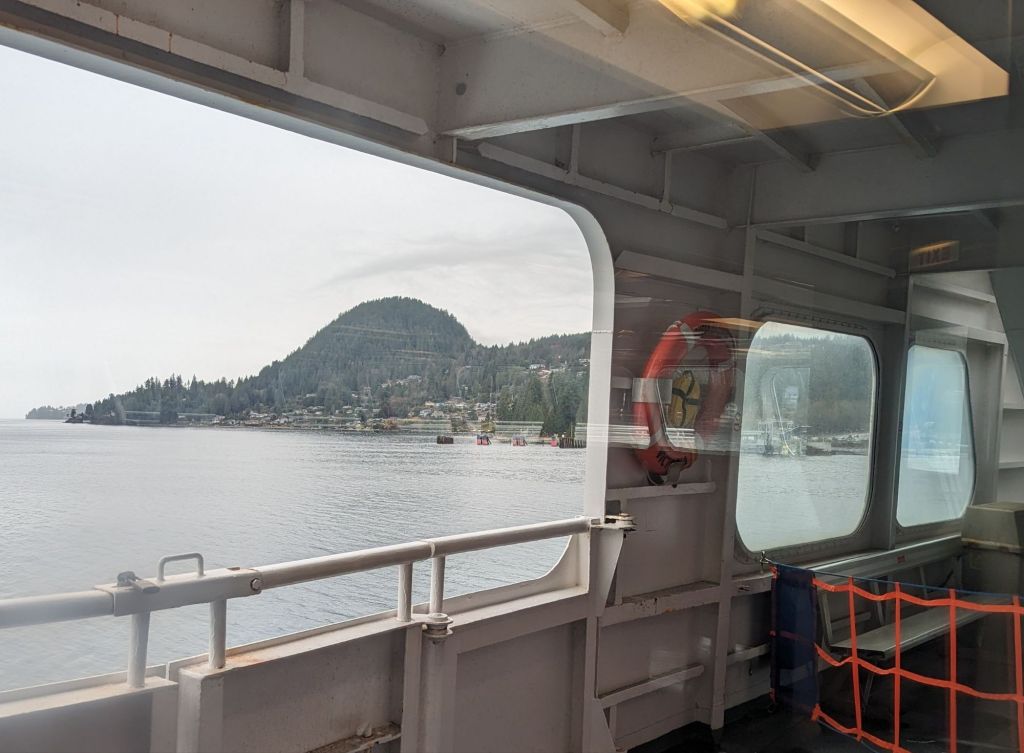 The 40 mins ferry crossing was flat calm and took us past Bowen Island, which we had last visited in 1996, causing fond memories to flood back…