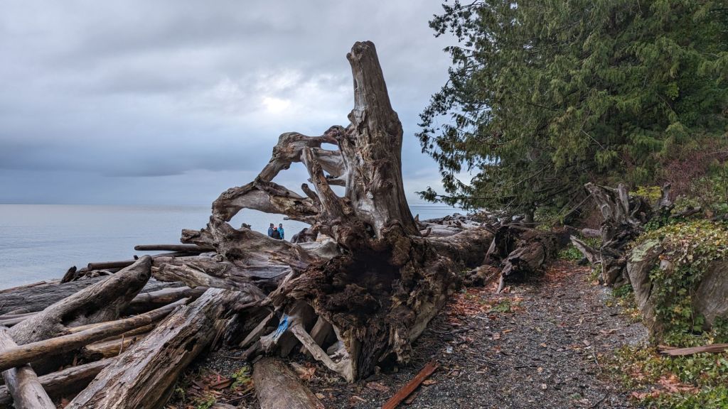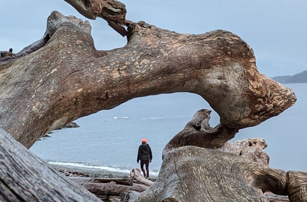 We descended some steep steps to the beach and enjoyed meeting the Pacific again, albeit from the East this time, now aware that this had been used as a film location for a long running Canadian comedy TV series…