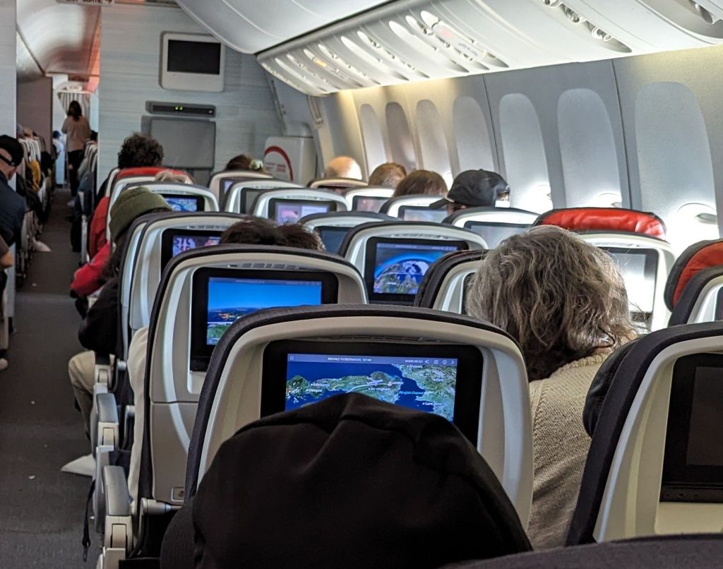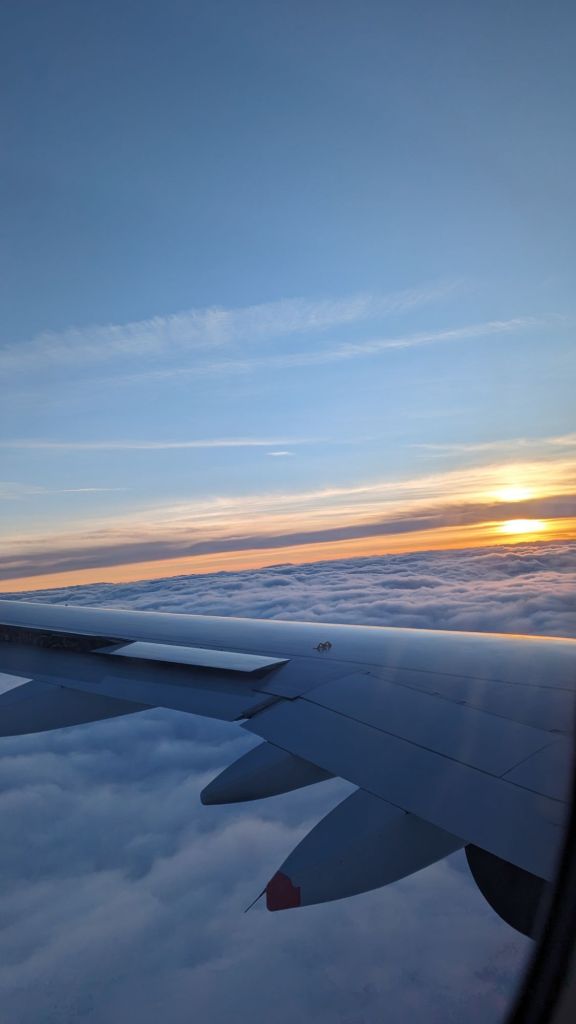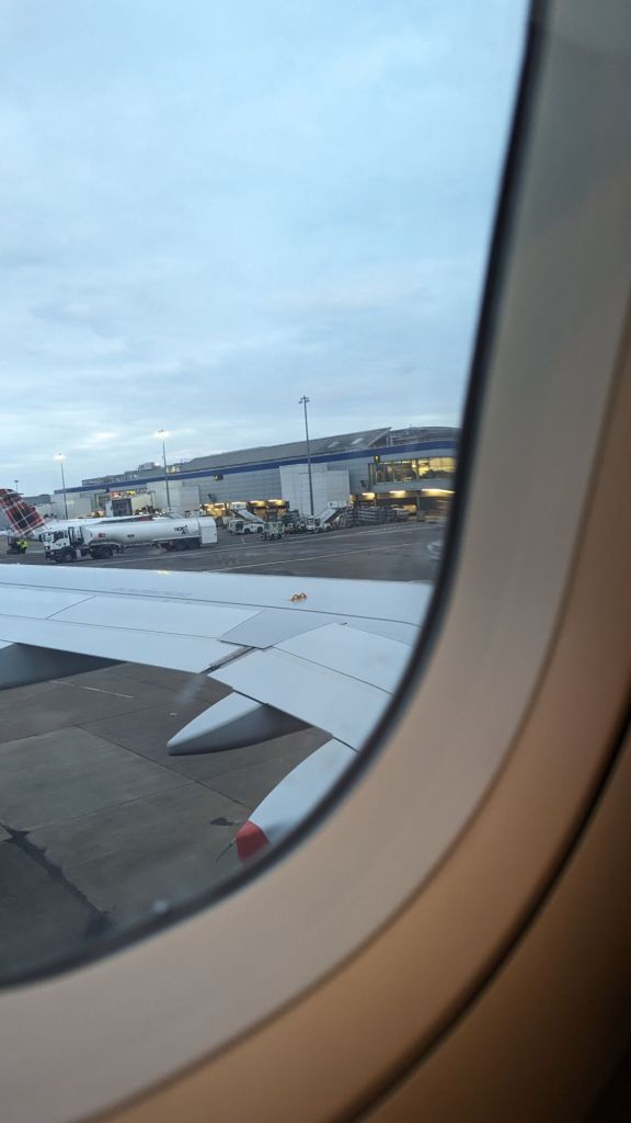 Getting to Terminal 5 was not straightforward, given that it involves getting a tube train and jogging through the endless corridors and changing floor levels frequently…. however, despite that, we arrived at our departure gate 20 minutes before our flight was due to leave…only to find it had been delayed by 3 hours, due to IT issues…