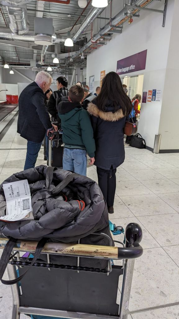 Since it hadn’t, we joined the queue of other passengers who had suffered the same fate…